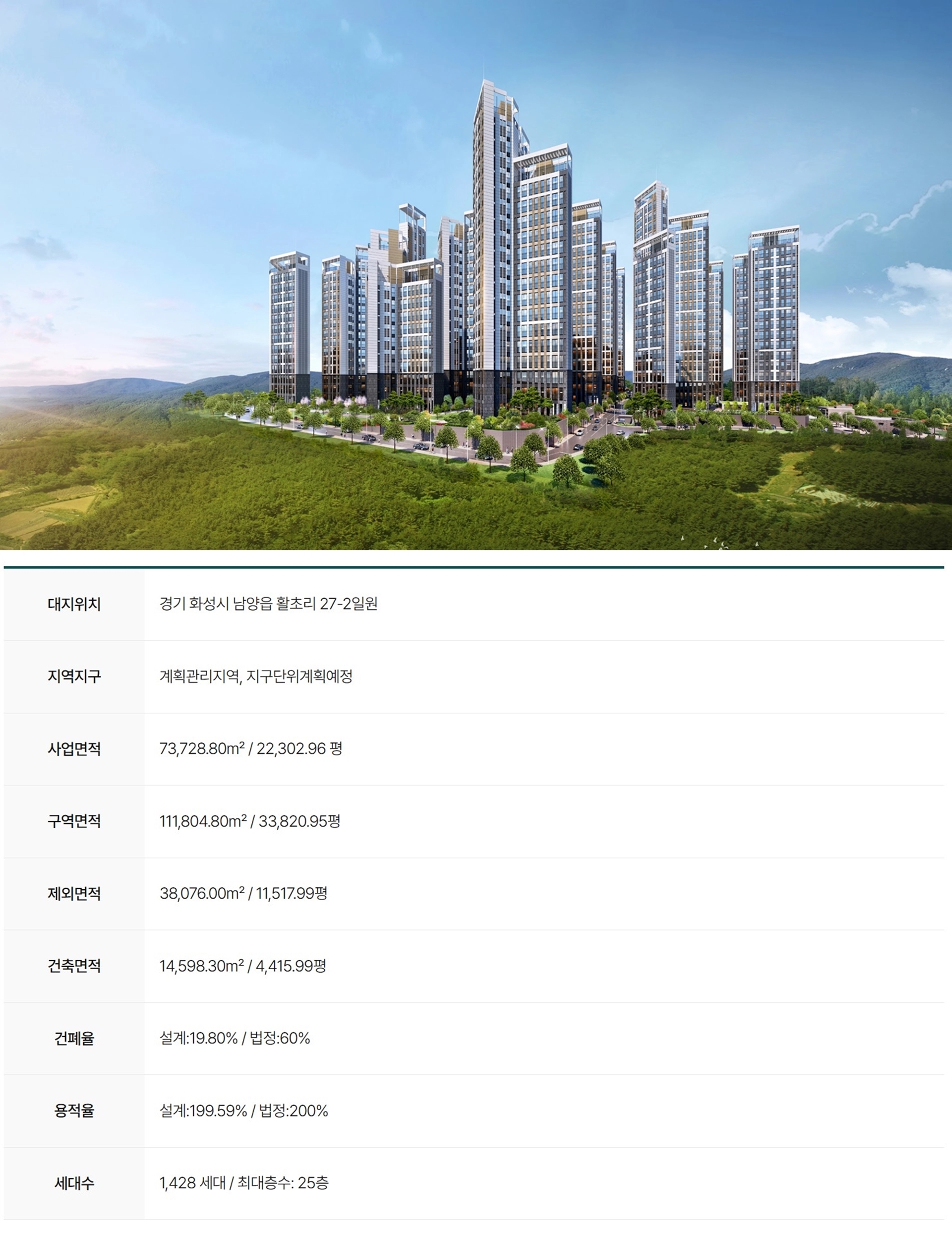 지하 3층, 지상 최고 25층 높이의 5개 동으로 구성되어 여유로운 동 간 거리와 쾌적한 단지 환경을 모두 갖추었습니다.